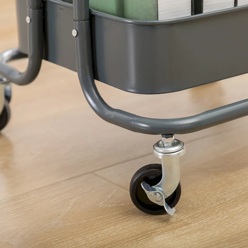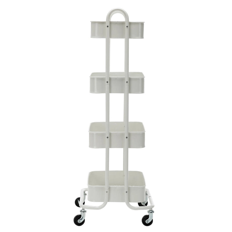 Get creative with the 4-Tier Metal Rolling Utility Cart. Four tiers of basket shelves on a durable rolling frame allow for numerous storage possibilities. Its open-ended nature allows you to think outside of the box: Load it up with moving supplies; potted plants for a mobile garden; or shakers, spirits, and bitters for a bar cart. Its a convenient storage option for tools, kitchen implements, and toiletries. The carts versatility makes it equally useful at home, for school supplies, or in the office.