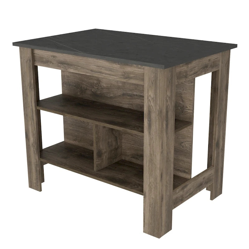 40.5 in. W Wood Kitchen Island Dining Table with 3 Shelves