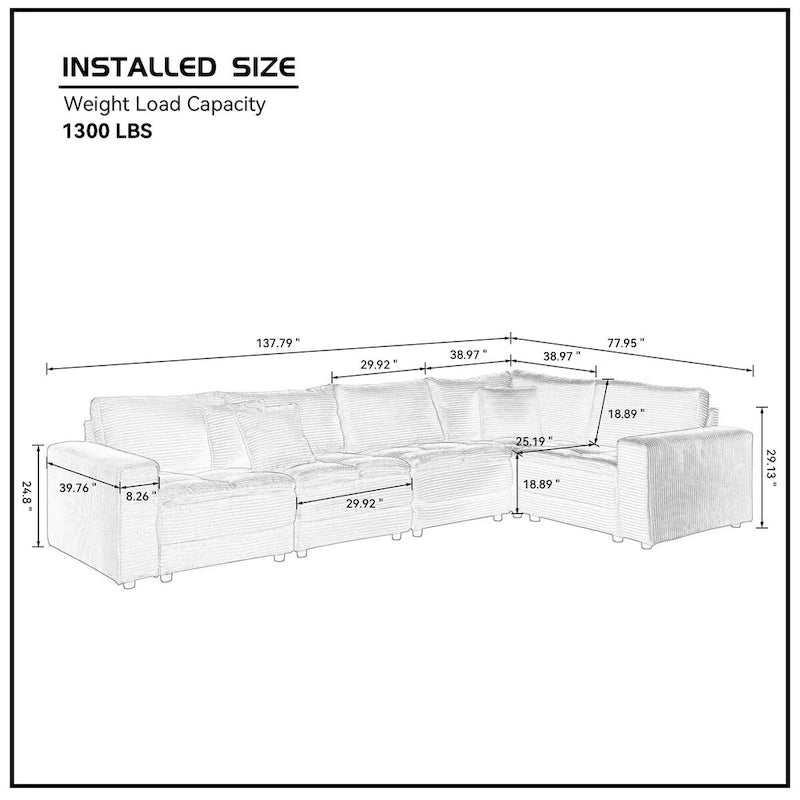 - Soft Corduroy Upholstered Modular Sectional Sofa: Upholstered with high-quality corduroy fabric, the surface is soft to the touch, providing a relaxing feel. It's durable, easy to care for, and resistant to wrinkles and fading.