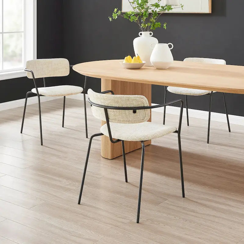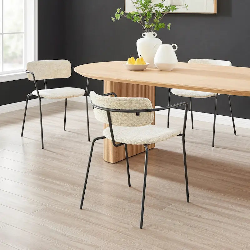 Choose the Alivia chair for a minimalist theme that emphasizes form follows function. Its casual styling is both durable and modern, featuring charming textural fabric and sleek powder-coated steel frame in a linear + tubular format. The fabric option is of Oeko-Tex Standard 100 certified fabric. Easy assembly. Available in Allure Cream and Allure Gray