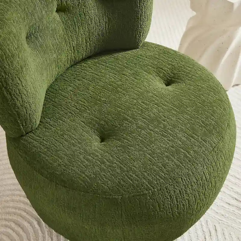 This exquisite swivel chair is a delightful addition to any room in your home. The upholstered fabric, crafted from jacquard flannel, envelops you in a cocoon of cloud-like comfort. Its frame, constructed from poplar wood and engineered wood, is complemented by a 360 rotating metal base. The chair's compact design not only saves space but also ensures no compromise on comfort. This elegantly rotating accent chair offers a chic haven for sipping your coffee, immersing yourself in a captivating novel, or simply enjoying a moment of relaxation. With its generous scale and contemporary silhouette, it exudes a touch of vintage charm while remaining entirely sophisticated.