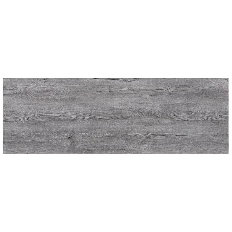 - Imitation wood grain tabletop adds a modern industrial touch.