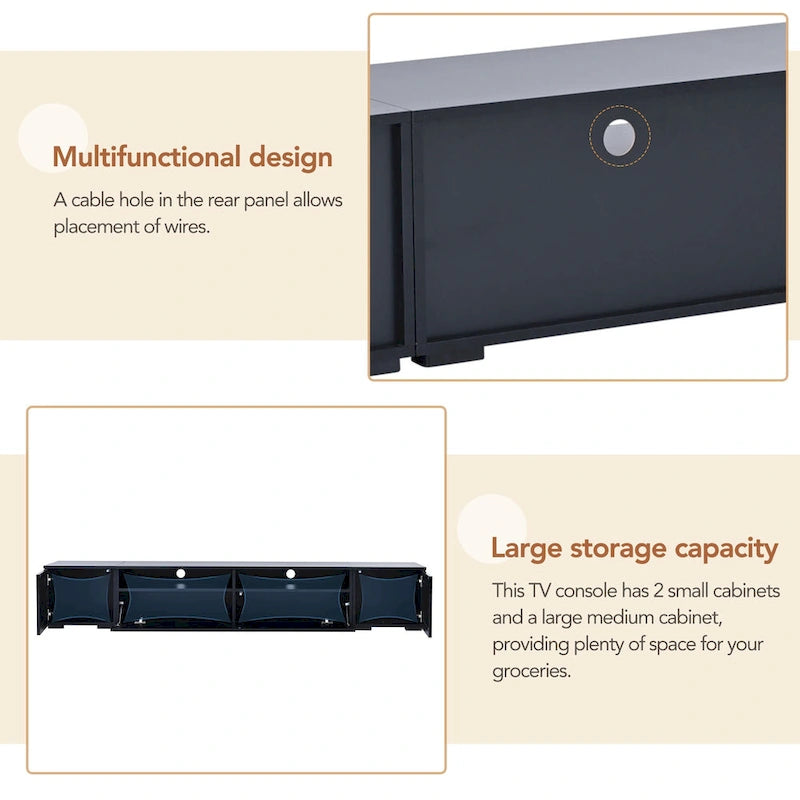 Black 82 TV Stand with Push-Open Doors & LED for TVs Up to 90