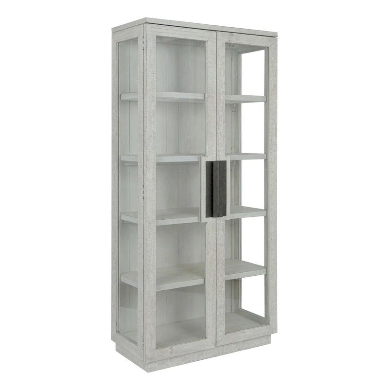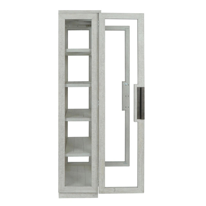 Combining traditional cabinet design and reclaimed pine wood with chic brass hardware, this piece demonstrates the dynamic beauty that occurs when old meets new. Tempered glass doors add shine to the look and make this cabinet an ideal display and storage space for kitchenware, books and games, or beloved collectibles.
