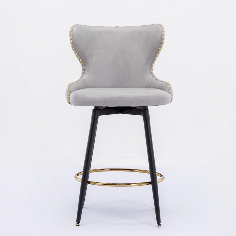 Counter Height Modern Leathaire Fabric Bar Chairs with Swivel and Tufted Gold Nailhead Trim Set of 2