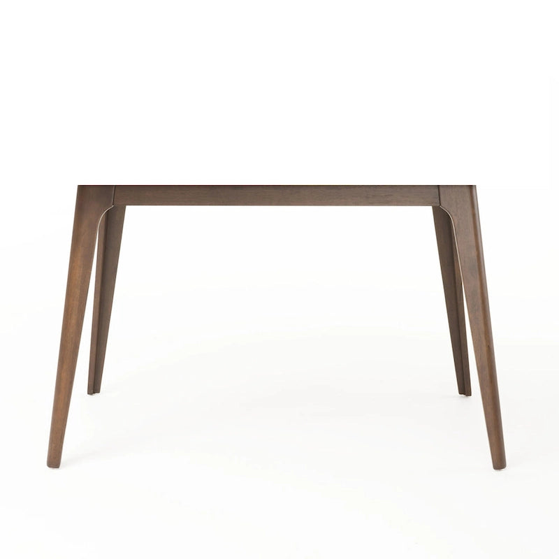 Elevate your mealtime experience with this stylish and functional 5-piece dining set. The table features a rich faux wood tabletop supported by solid rubberwood legs with a classic splayed design for modern flair. Four matching chairs are upholstered with smooth, cushioned fabric, combining comfort and elegance. Ideal for apartments, breakfast nooks, or compact dining rooms, this set offers everything you need for a cozy and stylish gathering space.