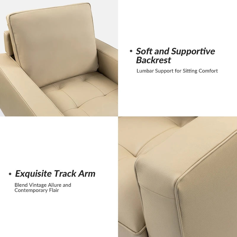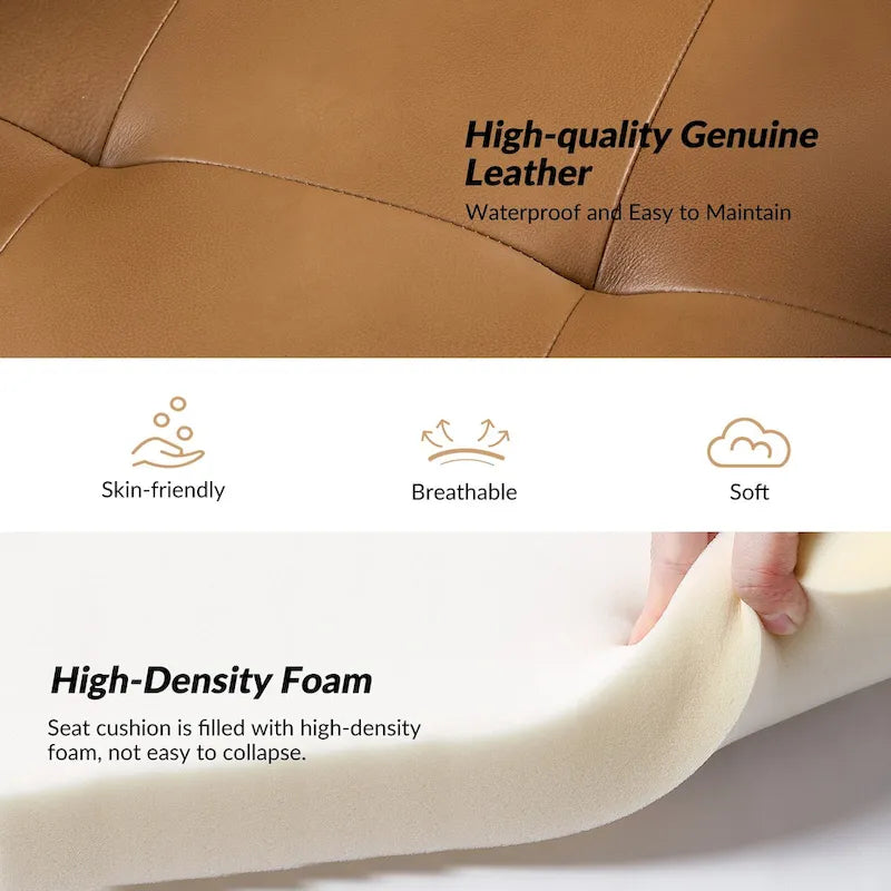 - Quality Material: This armchair set is wrapped in genuine leather and vegan leather, most of the body contact part of the material is genuine leather, and the rest is vegan leather.