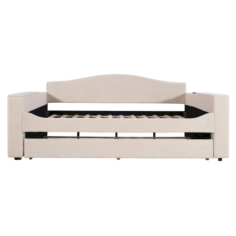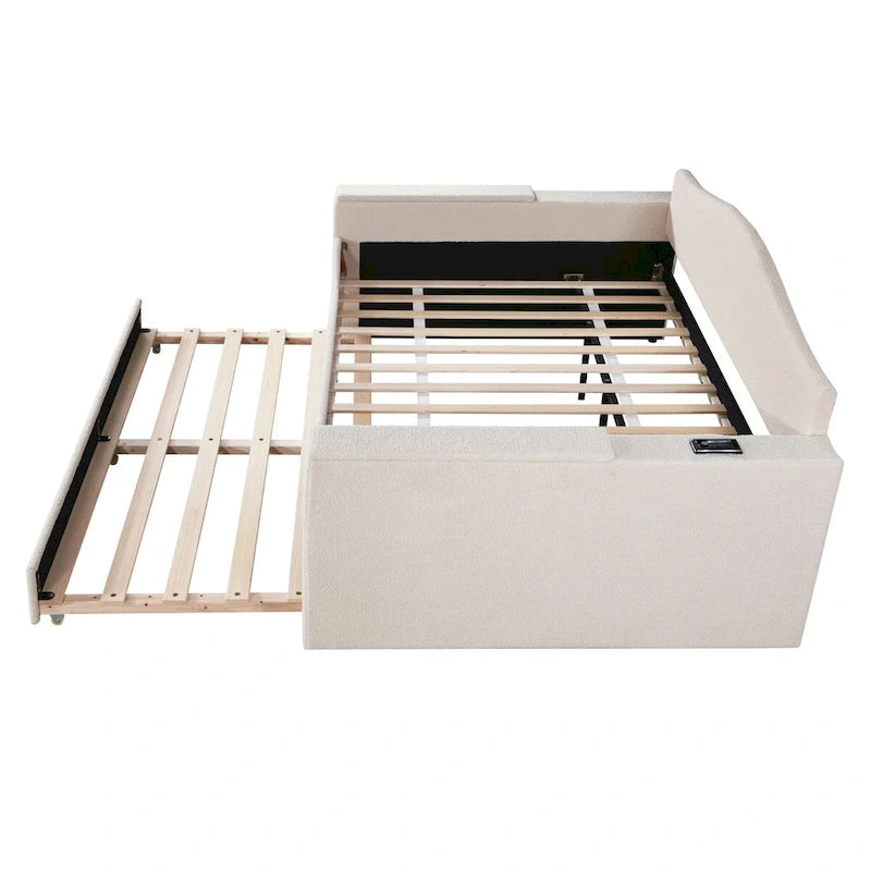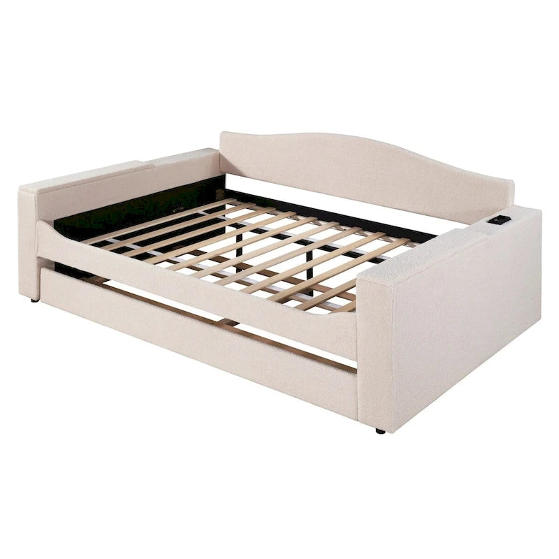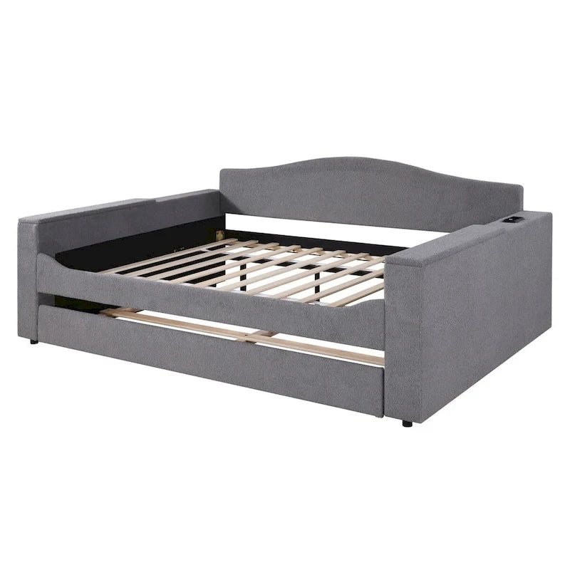 Full Size Upholstered Daybed with Storage Armrests and Trundle