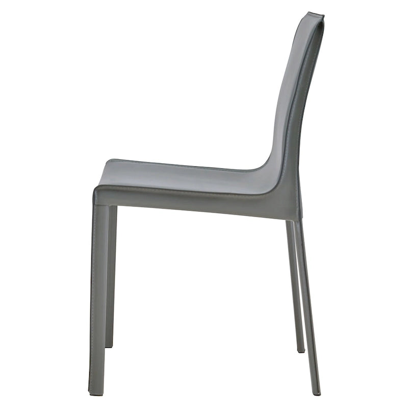 Gervin Recycled Leather Chair - The Gervin Chair is one that's been reduced down to its essentials, leaving form to follow function. It features a sturdy steel frame and its back, legs and seat are all upholstered with recycled leather and a petite contrasting piping. It would go great in a breakfast room or dining area. Fully assembled, available in other color options, set of 2.
