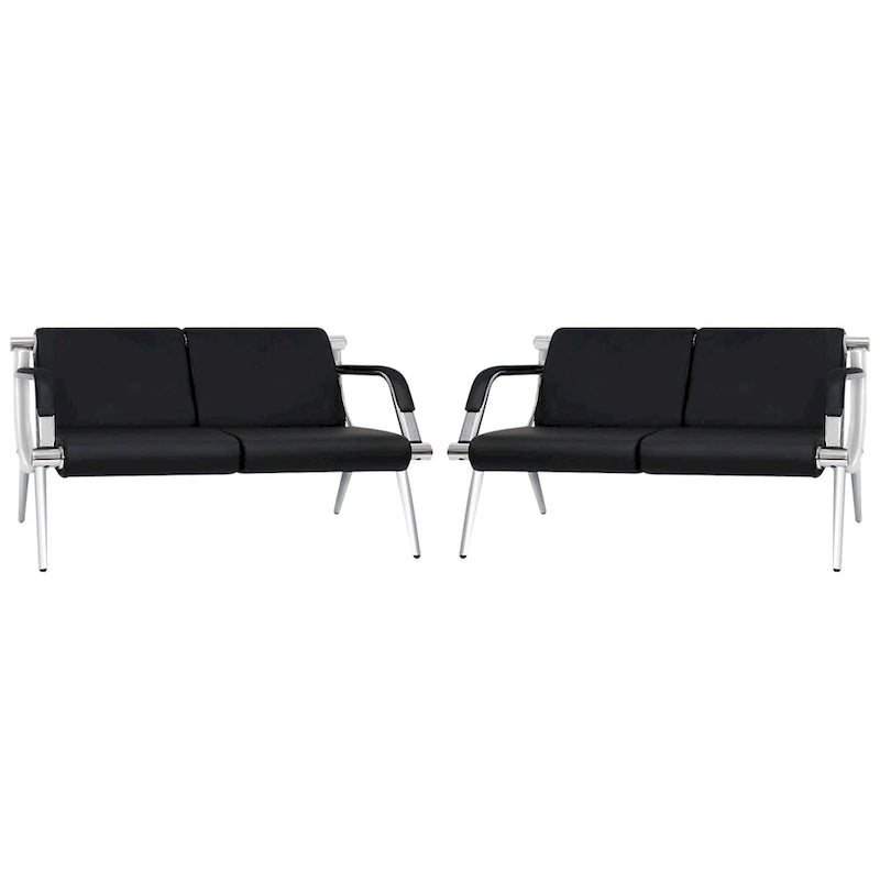 Treat customers to a comfortable spot to wait with this Kinbor two-seat waiting room chair. This reception bench starts with a sturdy steel frame to ensure a durable foundation, and it boasts a generous 330-pound limit per chair. Chrome finishing gives this bench an appealing gleam. PU leather adds a durable upholstery option that's easy to clean, and the sloping ergonomic back makes longer waits more comfortable. Armrests on either end of this bench add to the supportive and comfortable design.