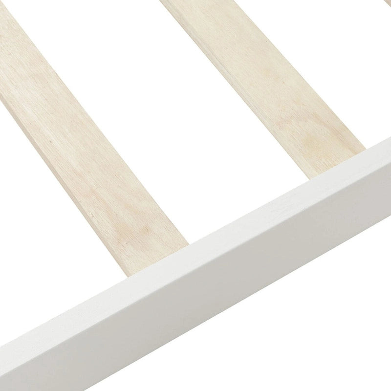 - This twin bed frame is solid wood, with heightened durability and stability.