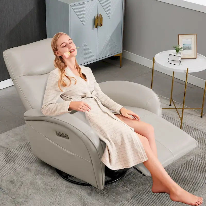 PU Leather 270 Swivel Glider Rocker Power Recliner with 2 Side Pockets, USB & Type-C Ports