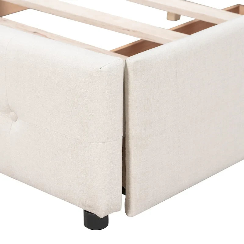 Queen Size Linen Button Tufted Platform Bed Frame with 4 Storage Drawers