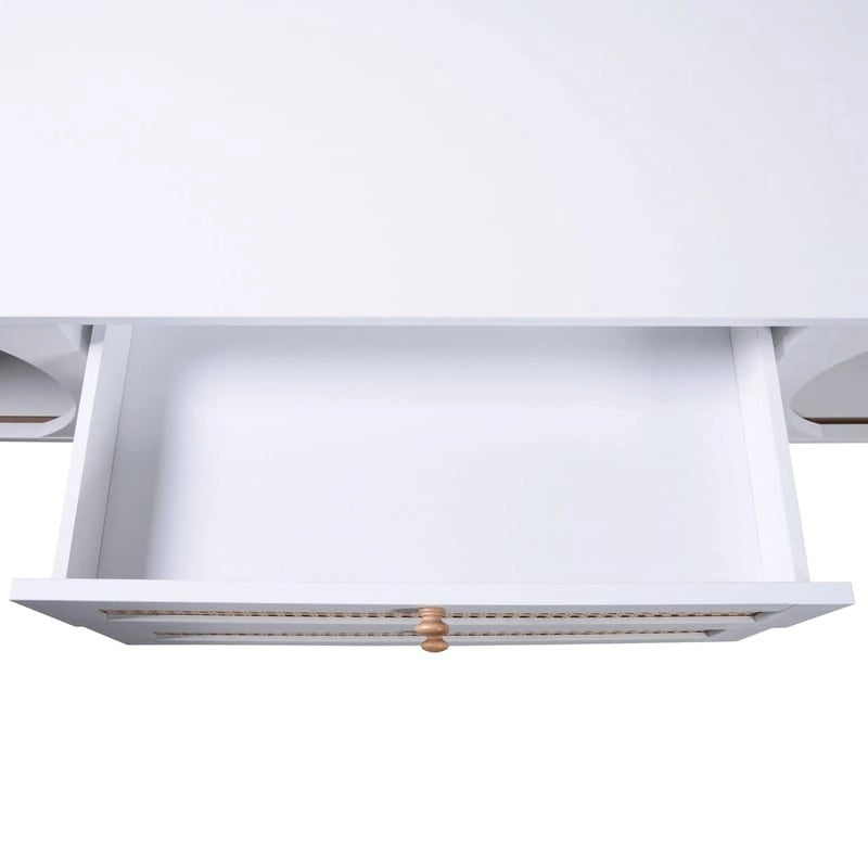 [Multi-Functional Storage] What's special about this table is the solid wood door, which opens gently to release the spacious storage space inside. The processed rattan detail on the drawers gives the table a rustic look, bringing natural beauty to your home. You can place your daily necessities properly on the table, cabinets and drawers.