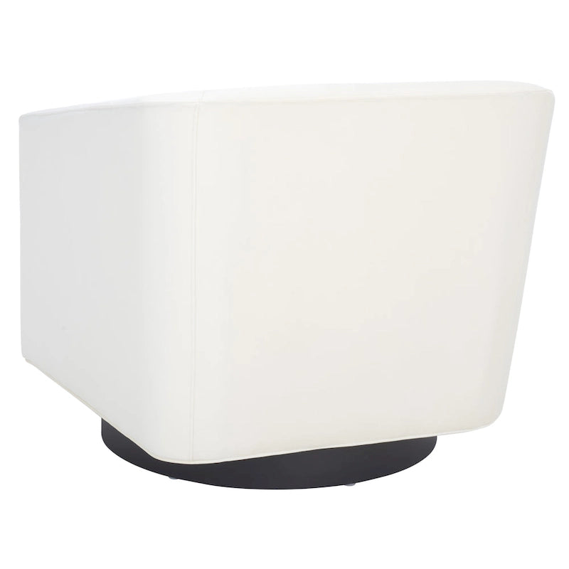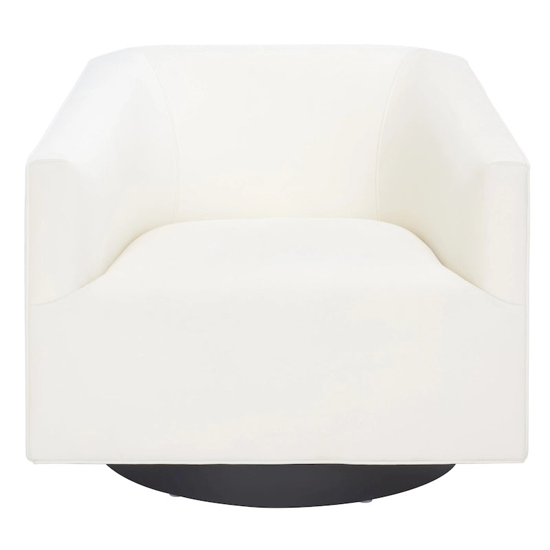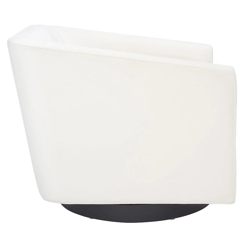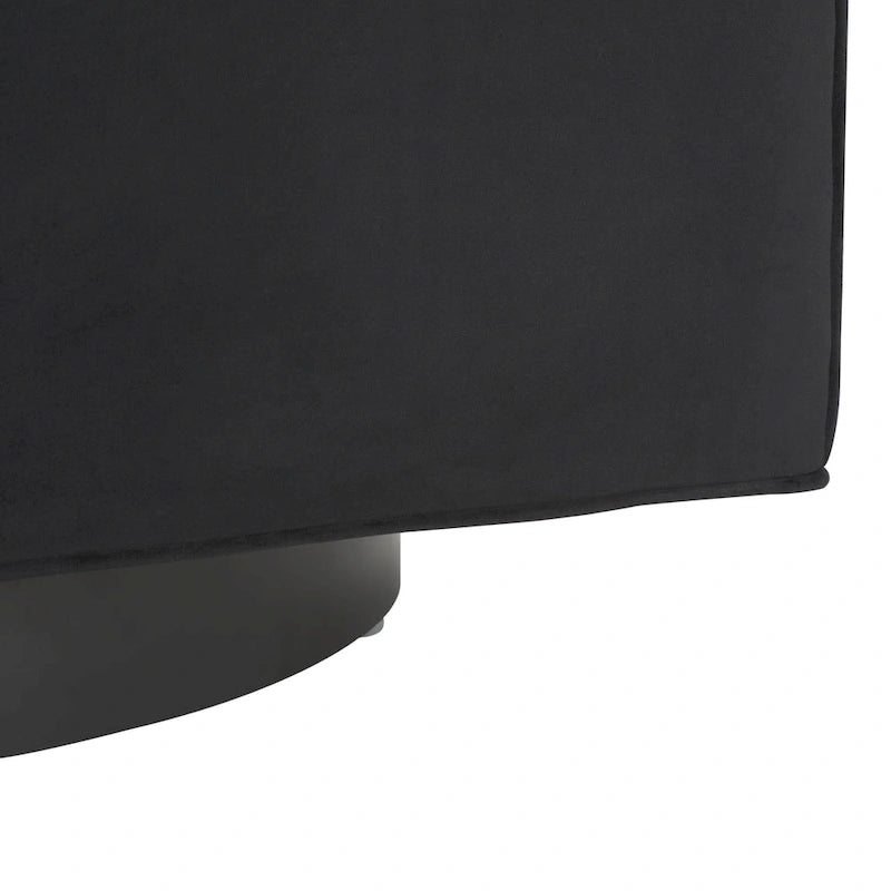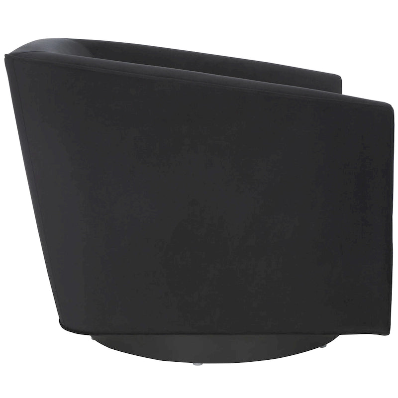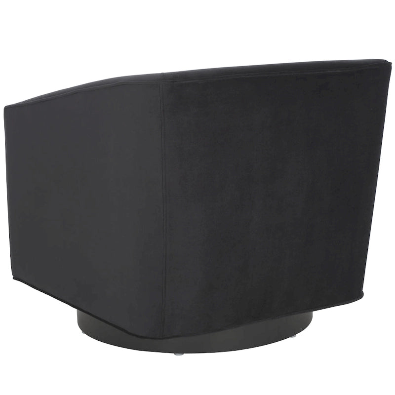 Surround yourself in luxury with the enveloping silhouette of this beautiful Accent Chair. A must-have for today's comfortable contemporary decor, this piece's clean lines are paired with softened angles and subtle curves that are perfectly highlighted by plush velvet. A black swivel base makes it a designer favorite.