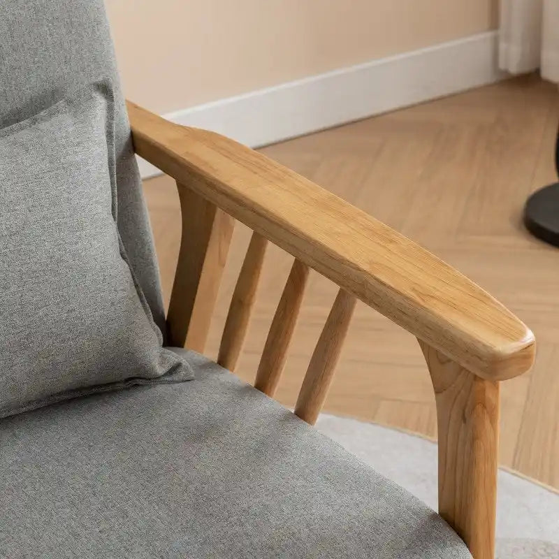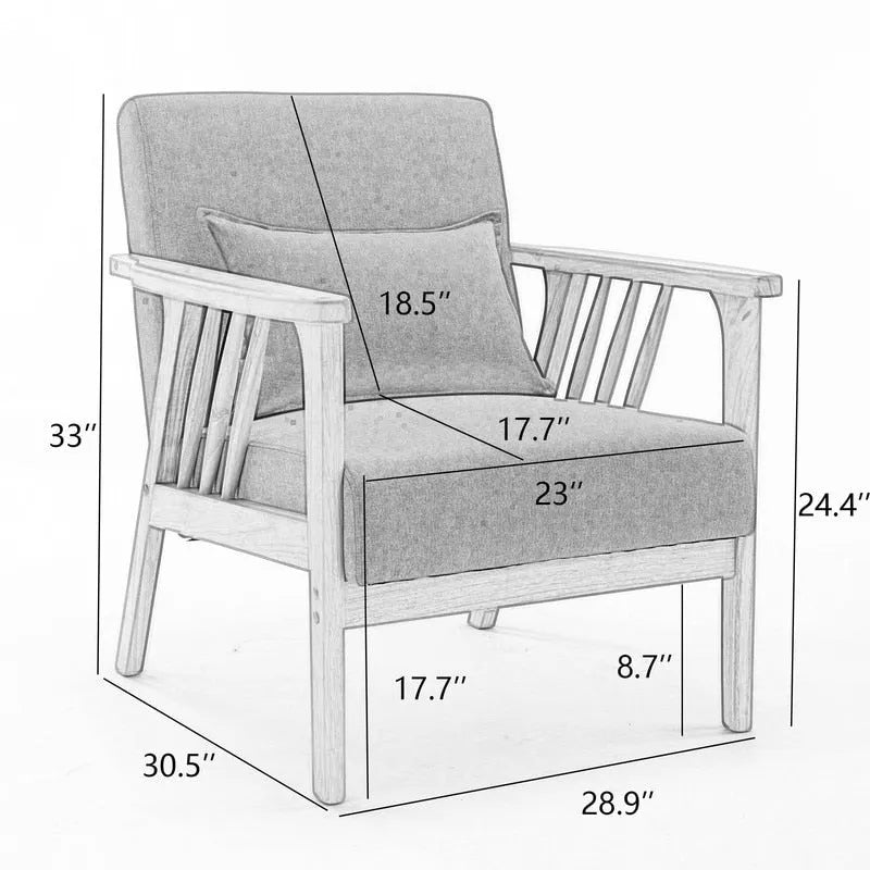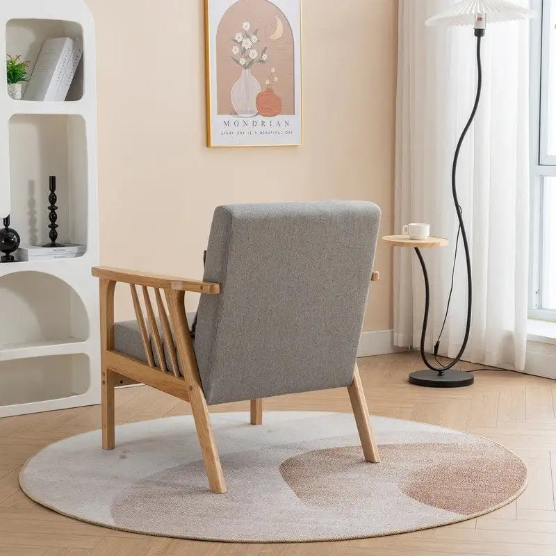 Relax in style and comfort with our Mid Century Modern Upholstered Accent Chair. This armchair's classic mid-century design blends seamlessly with your existing home decor and provides a functional and versatile piece of furniture that can be used in any room of your home. The sturdy solid wood legs and armrests, combined with the high-density foam cushioning, make this chair both durable and comfortable. Whether you're reading a book, watching a movie, or chatting with friends, this living room chair is the perfect companion to help you unwind after a long day.