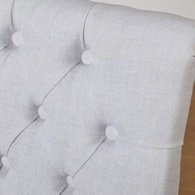 - Chair is in dark Espresso rubberwood legs with soft to the touch Aqua blue or Grey fabric