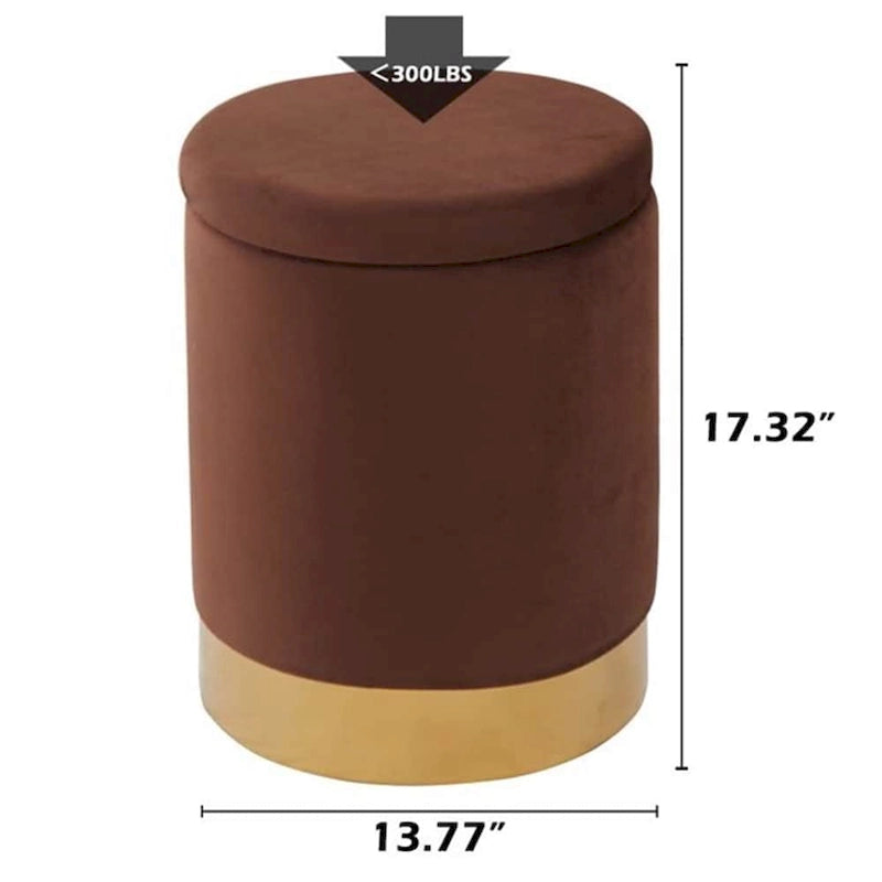 - Round Storage Ottoman Velvet Upholstered Footrest Dressing Stool, Padded Vanity Stool with Golden Metal Trim Removable Lid Change Shoe Footrest for Bedroom Living Room