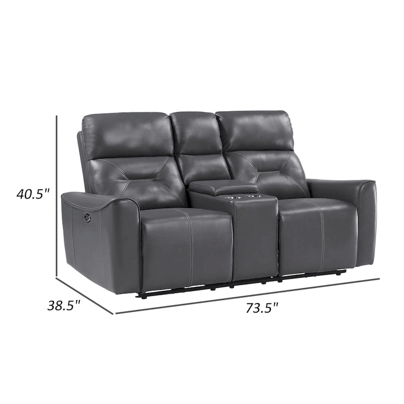 Cuddle up in style with this power-reclining double loveseat. Its premium dark gray faux leather, high-density foam padding, and tufted details offer lasting comfort. One-touch power controls let you easily adjust positions, and built-in USB ports keep devices charged. The center console with cup holders and hidden storage keeps everything within reach. Check out our Well collection for more.