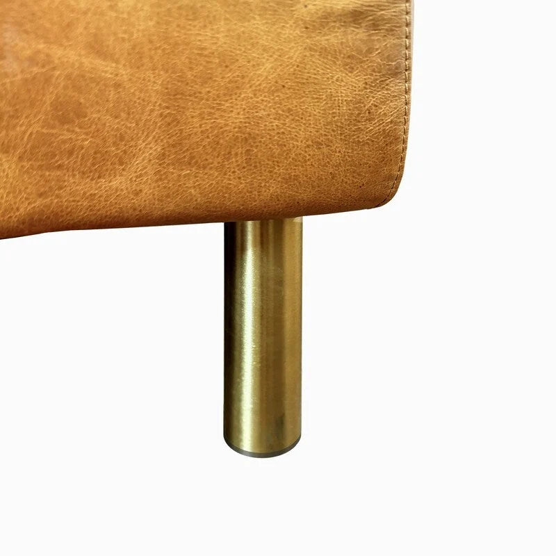 This sofa showcases a classic silhouette adorned with glammy metal legs in an antique brass finish. Most importantly, it is exceptionally soft and comfortable. Wrapped in distressed genuine leather with extra padding, this couch offers a no-compromise combination of luxury and comfort.