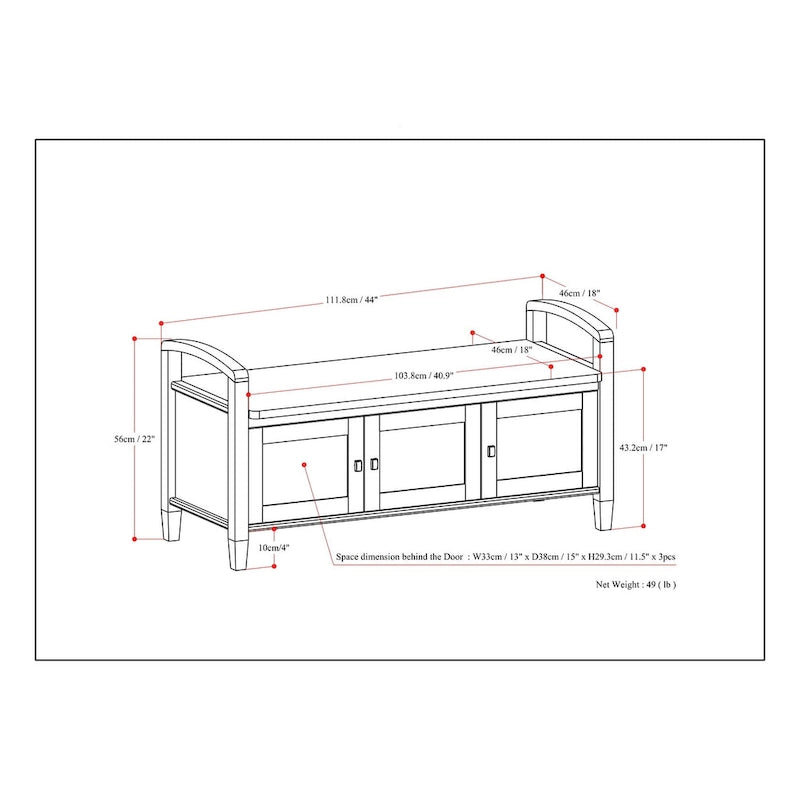 Add elegance and functionality to your entryway with the WYNDENHALL Norfolk Solid Wood 44-inch Wide Entryway Storage Bench. Handcrafted from high-quality solid wood, this bench is designed to keep your shoes organized and your home looking stylish. It features three shaker-style cabinet doors that open to reveal large internal storage, perfectly sized for shoes and other small items. The bench is available in various finish colors, so you can choose the one that best complements your decor. With its transitional style, brushed nickel door knobs, and square tapered legs, this bench is the perfect addition to any home.